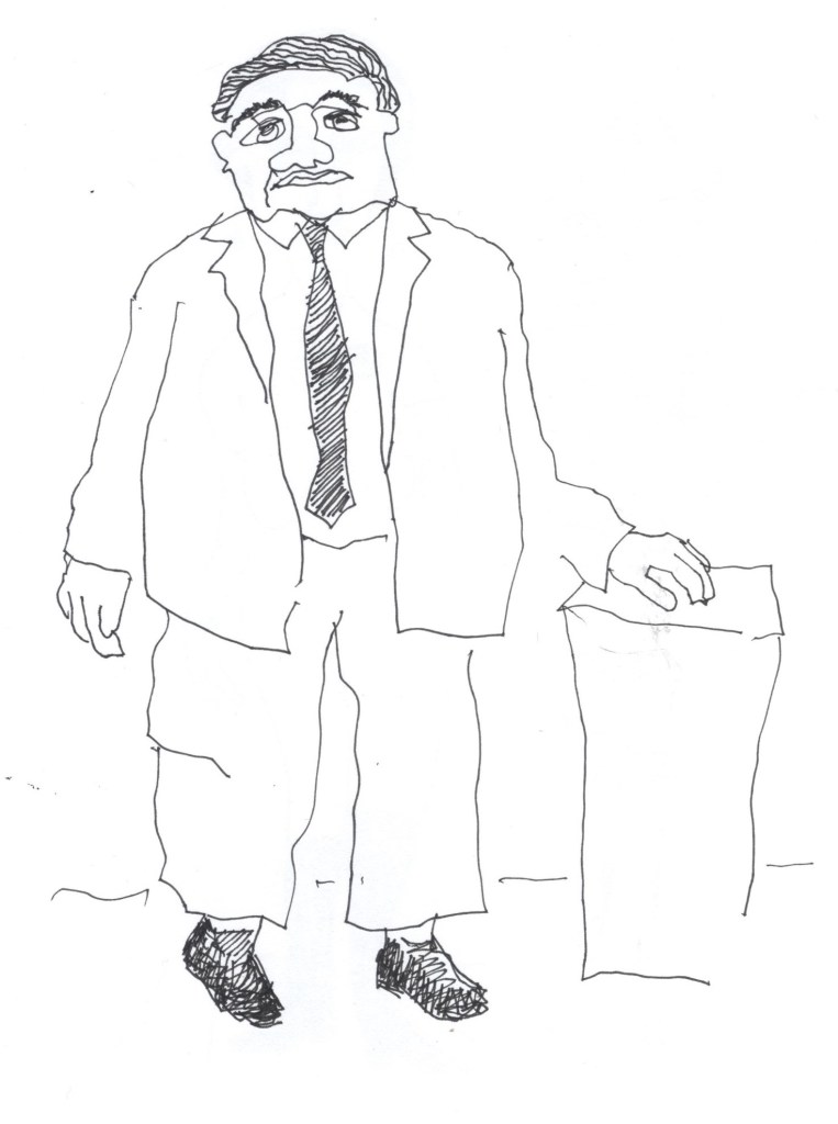 I am an artist and illustrator. And these “episodes” are quick sketches of and stories about people that I meet or have met over the years. I do the drawings first, keeping them simple and spontaneous but (hopefully) sophisticated. They are with perhaps one or two exceptions, line drawings done with a fine-line pen. I started doing these drawings in business meetings. That expanded to doing them in waiting rooms or while traveling, as a way to remember the people I met, worked with, or just observed from afar. Once I’d done a number of these sketches, I began to wonder about the people they depict. What might they be really like on the inside? What are their dreams? Their fears? Their secrets? Since I did not know the people I was drawing (or because I did not know them well), I felt ill-at-ease about asking personal questions. And so, I began to create stories about these people, based on what I imagine their life is like. That way, each drawing became a kind of psychological adventure; I never knew, when I sat down to write, what I was going to find. Like the drawings themselves, the stories are not to scale or photographic. If there is any prevailing theme, it is this: people keep their inner world well-hidden and probably for damn good reason. A secondary theme: making stuff up is much more fun than reality. And in a way, that is the real truth in all this. If you would like to learn more about me or my work please send a note. Our email: myron.gilbert@att.net